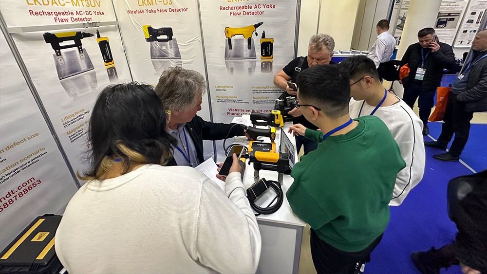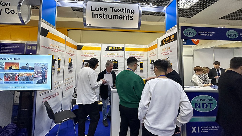 2024年4月15日,濟寧魯科檢測器材有限公司代表團遠赴俄羅斯莫斯科,參加2024年俄羅斯莫斯科NDT展。亮相本次展會(huì )的設備有聯(lián)合中國石油大學(xué)(華東)共同研發(fā)的ACFM交流電磁場(chǎng)檢測儀,自主研發(fā)的無(wú)線(xiàn)式磁粉探傷儀、管道磁粉探傷儀、角焊縫磁粉探傷儀、腐蝕測厚機器人等。儀器一經(jīng)亮相,便引起國際友人廣泛關(guān)注與一致好評。