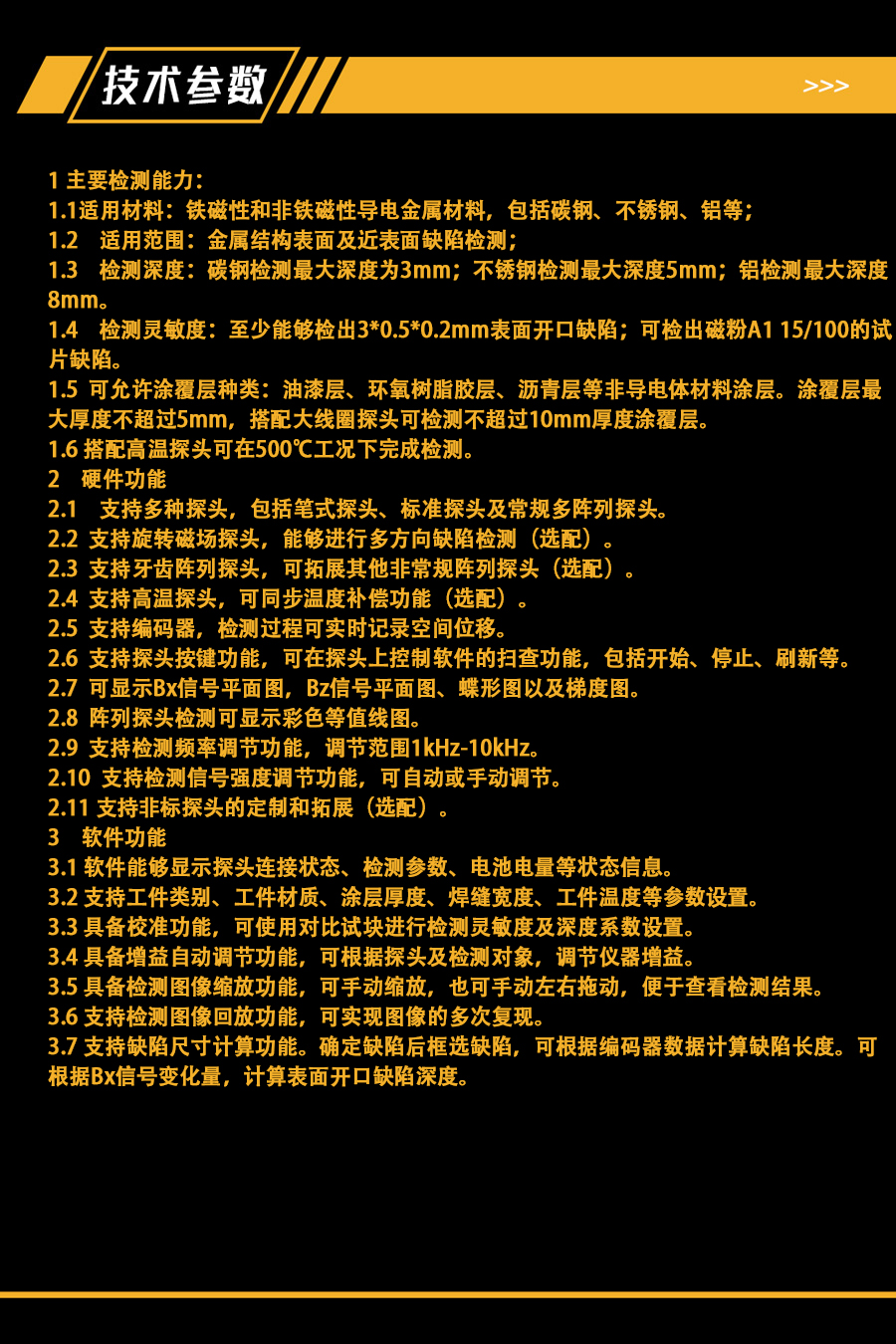 3、可檢測表面350℃高溫中的非疲勞裂紋;可用于水下500m深度結(jié)構(gòu)缺陷檢測;