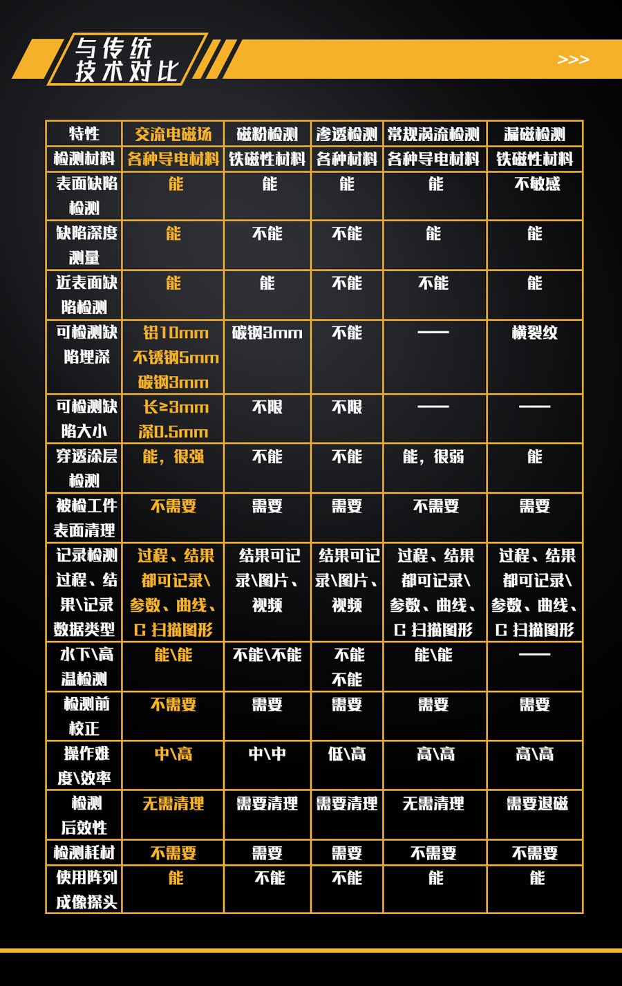 1、交流電磁場檢測技術(shù)適用各種導(dǎo)電體材料,主要用于鐵磁性或非鐵磁性材料對于表面或近表面的缺陷可以快速準(zhǔn)確的檢出;