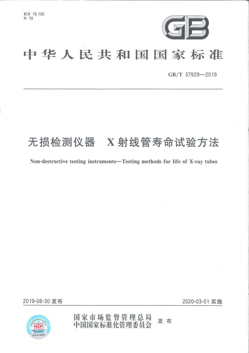 | 《無損檢測儀器X射線管壽命試驗方法》 | GB/T 37929-2019 | 2019-8-30 |