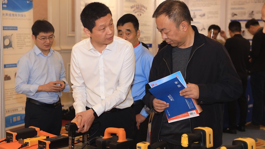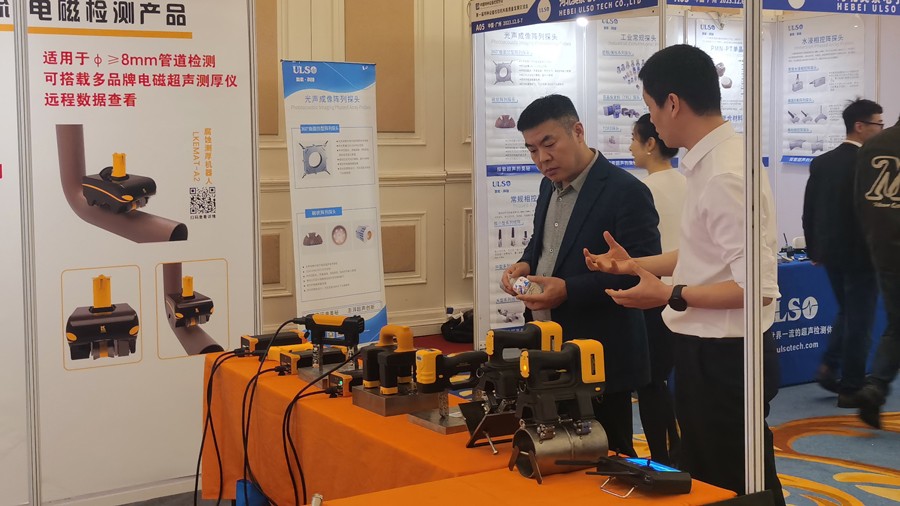 濟寧魯科檢測器材有限公司出席會(huì )議并攜自主研發(fā)的LKMT-D3無(wú)線(xiàn)磁軛探傷儀、LKMT-E2充電式旋轉磁場(chǎng)探傷儀、LKMT-E3L管道磁粉探傷儀、LKMT-E3A系列角焊縫磁粉探傷儀、LKMT-D6充電式交直流磁軛探傷儀、LKEMAT-A2腐蝕測厚機器人,以及聯(lián)合中國石油大學(xué)(華東)共同研發(fā)的ACFM交流電磁場(chǎng)檢測儀等設備參加設備展示,收到與會(huì )嘉賓一致好評。
