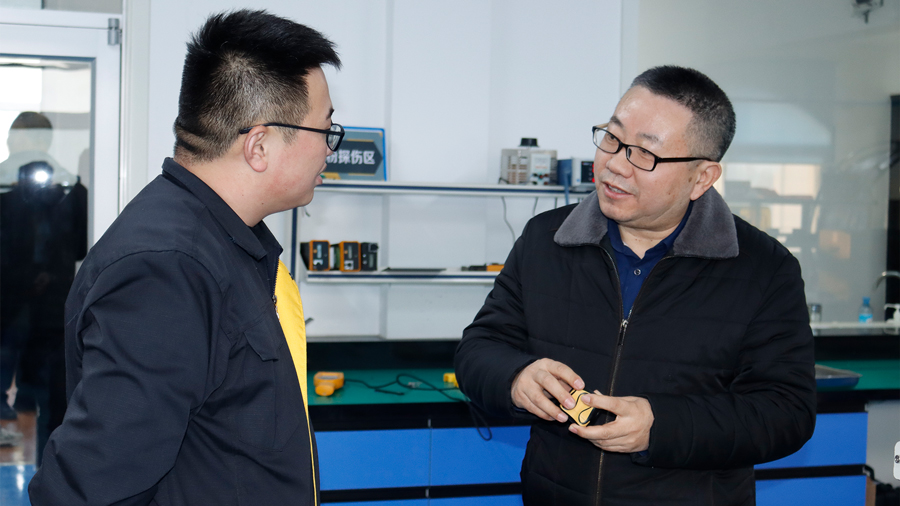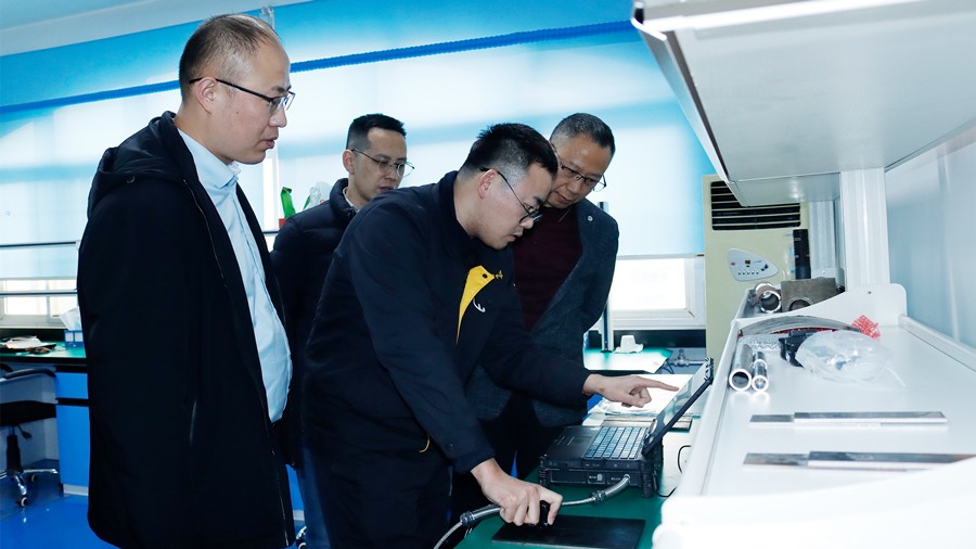 2024年1月10日,廣東省特種設備檢測研究院順德檢測院一行蒞臨我司參觀(guān)指導,先后參觀(guān)了我公司無(wú)塵車(chē)間、實(shí)驗室等,對我公司自主研發(fā)的無(wú)線(xiàn)式磁粉探傷儀、管道磁粉探傷儀、角焊縫磁粉探傷儀、腐蝕測厚機器人及聯(lián)合中國石油大學(xué)(華東)共同研發(fā)的ACFM交流電磁場(chǎng)檢測儀等設備進(jìn)行性能測試,均達到預期效果,并對我公司研發(fā)、生產(chǎn)及售后能力給予高度肯定。