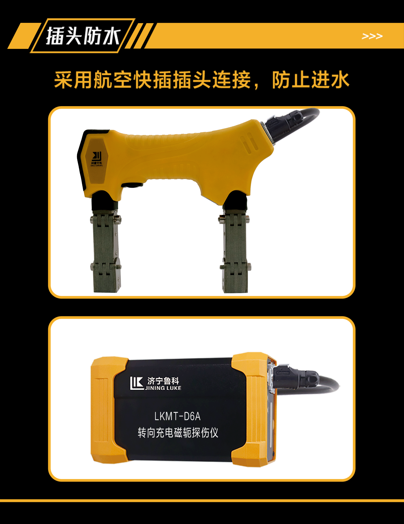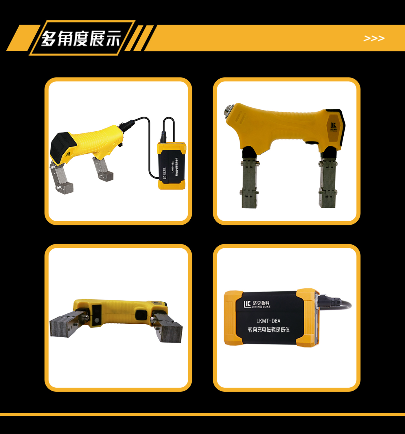 1、LKMT-D6A轉向充電磁軛探傷儀,采用鋰電池電源供電,無需外接110V或220V電源即可產(chǎn)生交流或直流磁場進行探傷。