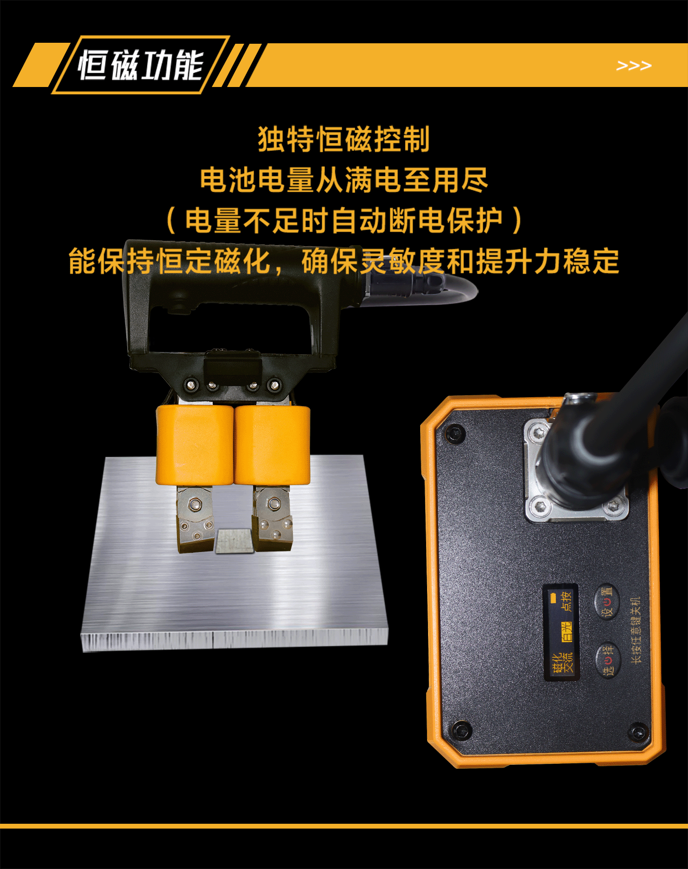 6、恒磁控制功能,因電量下降導(dǎo)致提升力不滿足探傷需求時自動斷電,保證探傷靈敏度;