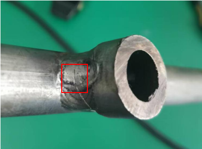 小接管工件上共有四處人工刻槽缺陷,可檢出三處缺陷,一處缺陷未檢出,各缺陷位置及檢測結(jié)果如下: