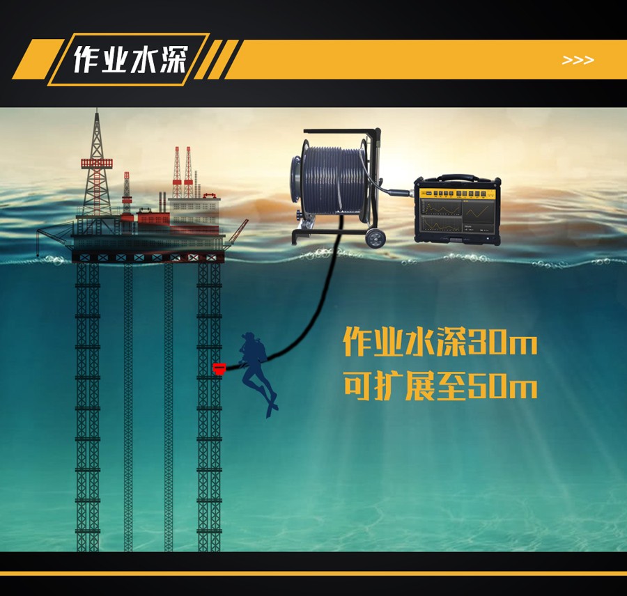 3、可檢測(cè)表面 350℃高溫中的非疲勞裂紋;可用于水下500m 深度結(jié)構(gòu)缺陷檢測(cè);