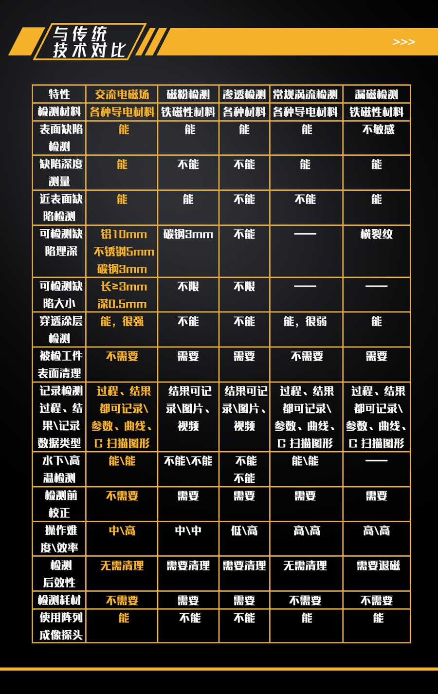 6、便攜式的檢測(cè)系統(tǒng),減少檢測(cè)人員的勞動(dòng)強(qiáng)度提升檢測(cè)效率;探頭可以較快的速度進(jìn)行掃查,檢測(cè)無后效性,無需退磁、表面清理等;