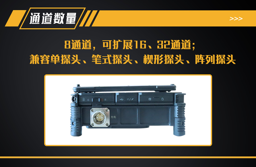 3、儀器通道:8通道(可擴(kuò)展16、32通道);兼容單探頭、筆式探頭、楔形探頭、陣列探頭;