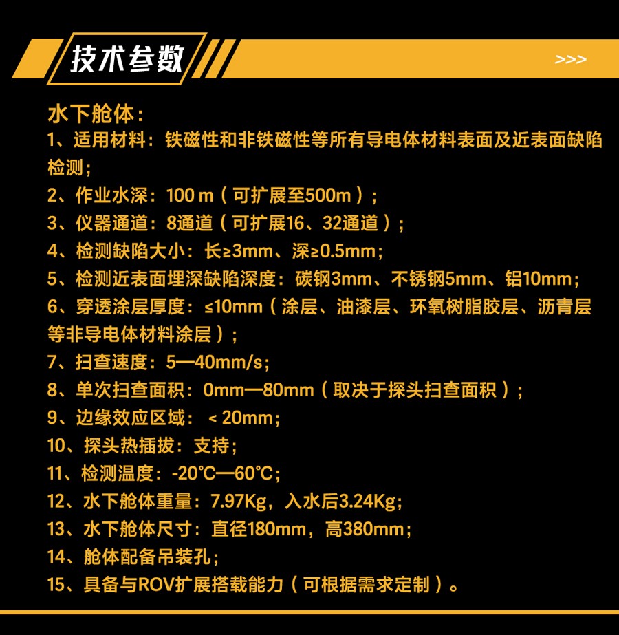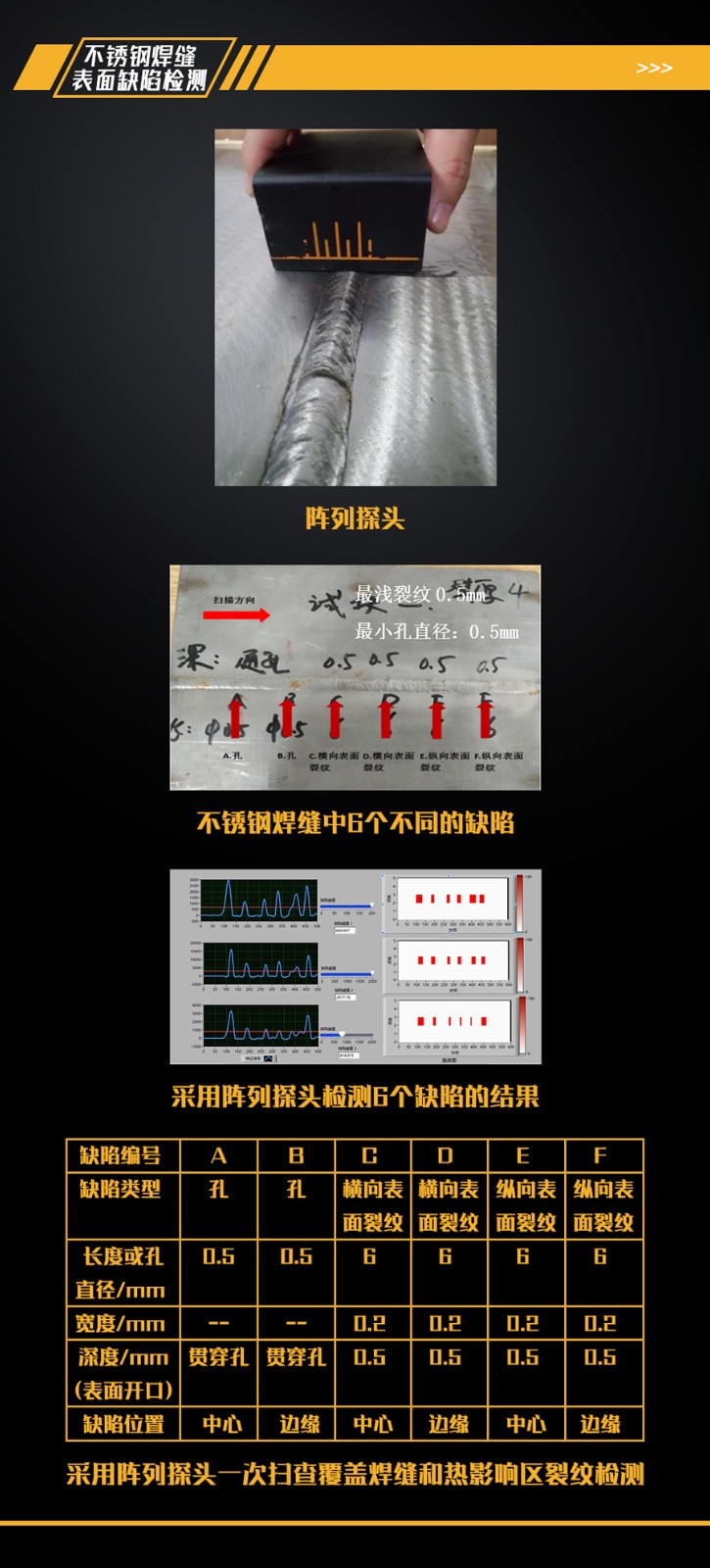 3、可檢測(cè)表面 350℃高溫中的非疲勞裂紋;可用于水下500m 深度結(jié)構(gòu)缺陷檢測(cè);
