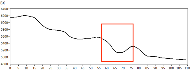 我們根據(jù)實(shí)際檢測對象的材質(zhì),制作了420*180mm規(guī)格的碳鋼材質(zhì)小接管管座試塊,試塊上角焊縫位置處分別有長度*深度為10mm*3mm、5mm*2mm的人工刻槽作為模擬缺陷,如下圖3所示。采用X1-LP-10型筆式探頭,首先在功能測試試塊上對交流電磁場檢測系統(tǒng)的綜合性能進(jìn)行核查,得到典型缺陷的特征信號,如圖4所示。然后再對小接管管座試塊進(jìn)行缺陷掃查,得到以下缺陷掃查圖像,檢測圖像如圖5、圖6所示。