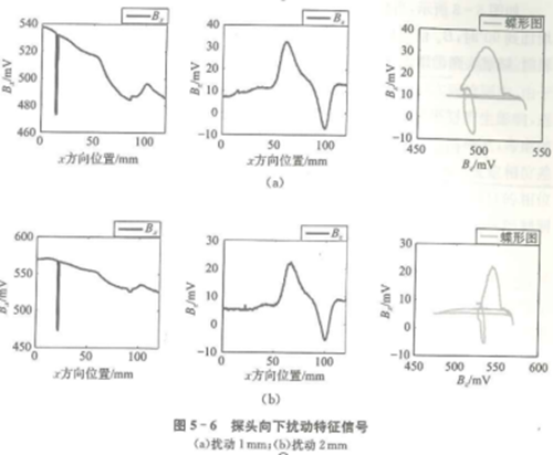 ②當提離擾動方向相反時,Bx信號的變化方向也相反;且提離擾動的高度越大,Bx干擾信號的變化越大。