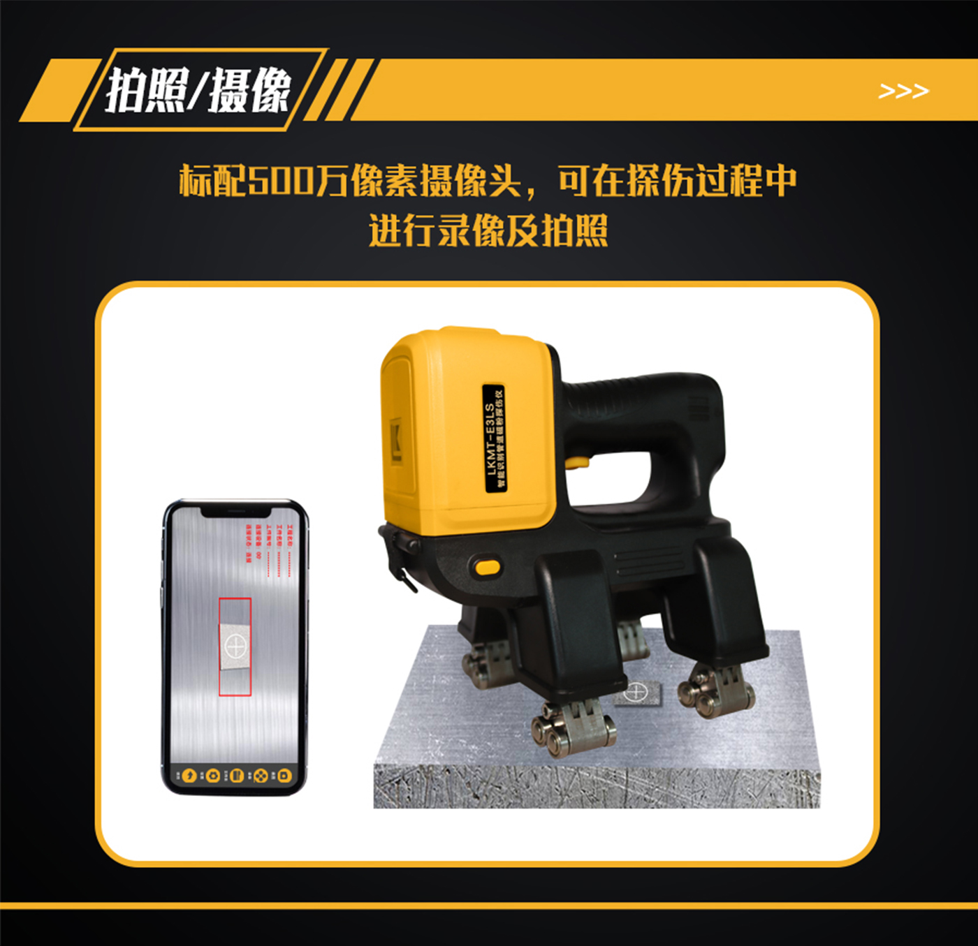 11、探頭內(nèi)部裝有500萬像素?cái)z像頭,手機(jī)、平板電腦或AR眼鏡等手持終端安裝APP軟件,通過Wi-Fi與探頭鏈接,手持終端實(shí)時(shí)顯示探傷狀態(tài);
