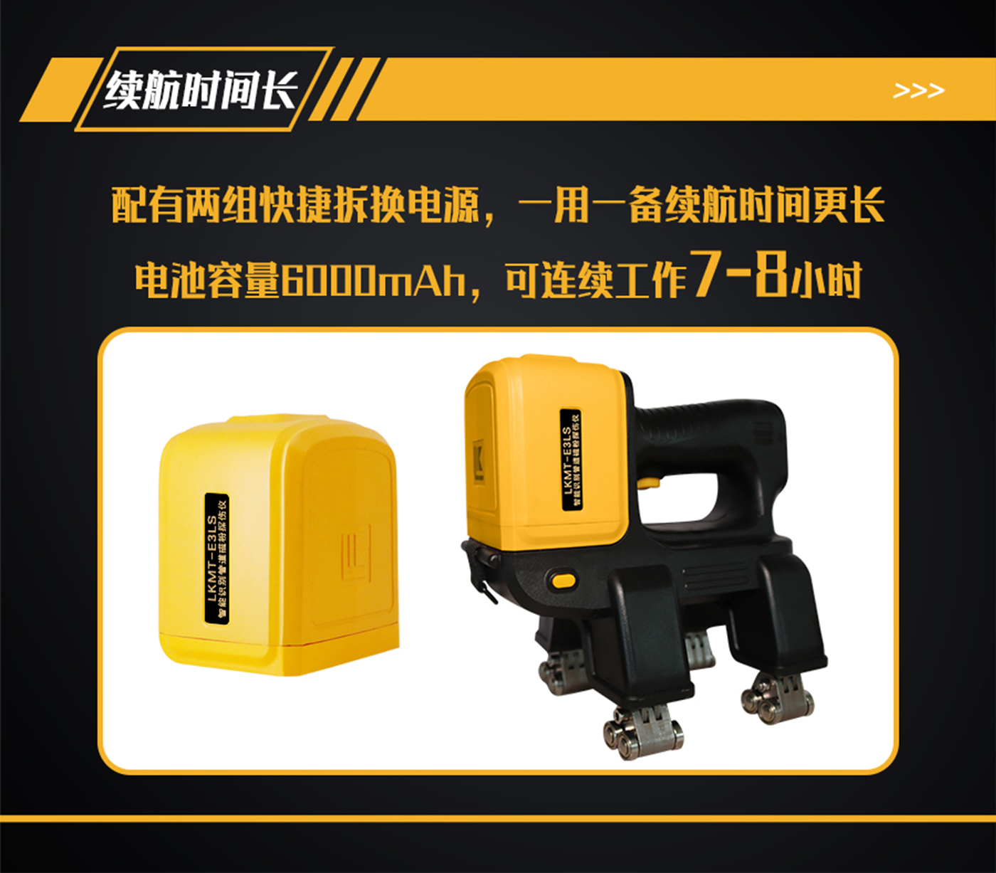 1、LKMT-E3LS一體式旋轉(zhuǎn)磁場(chǎng)管道磁粉探傷儀,探頭與鋰電池一體式設(shè)計(jì),無需使用線鏈接;