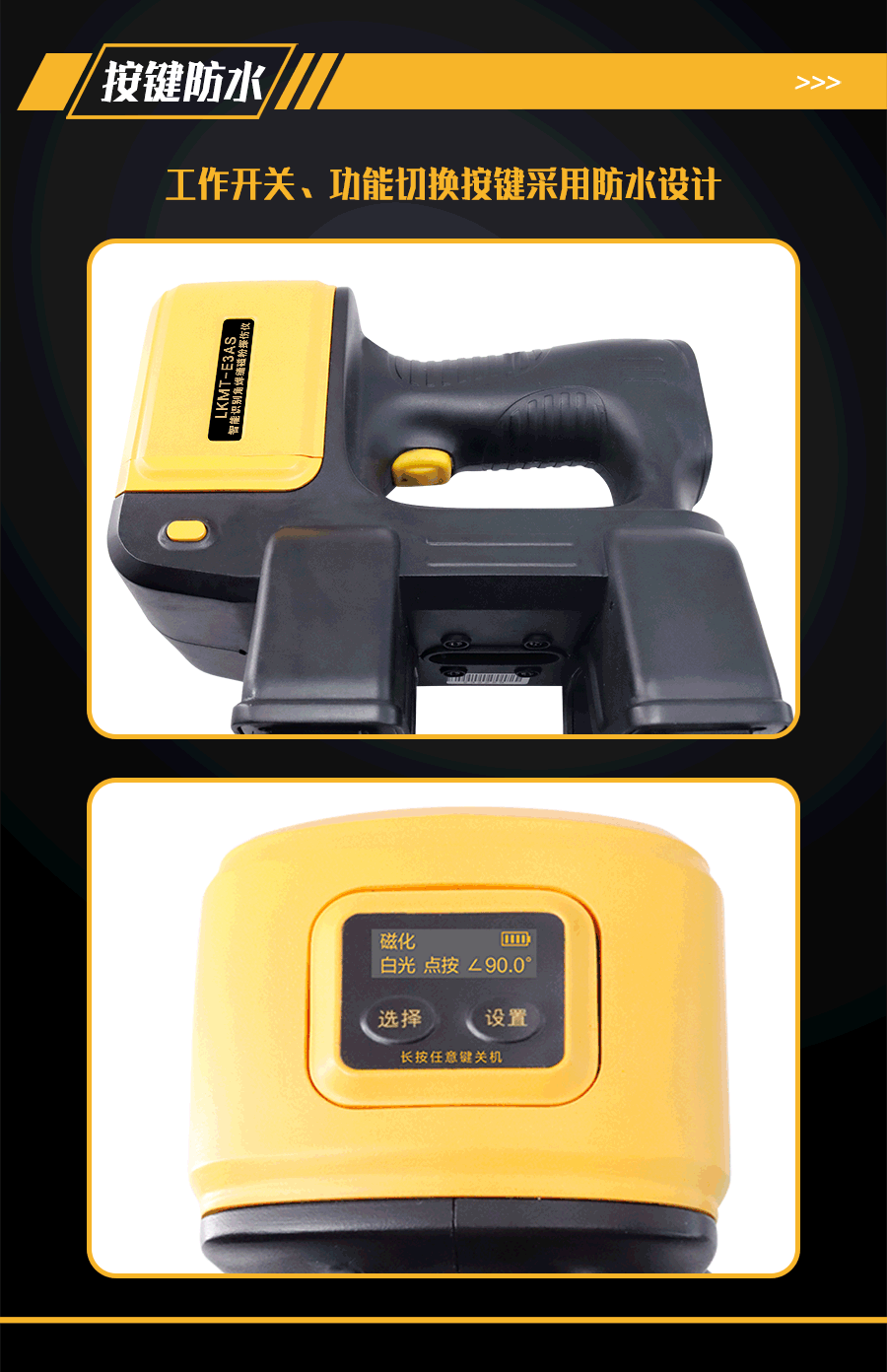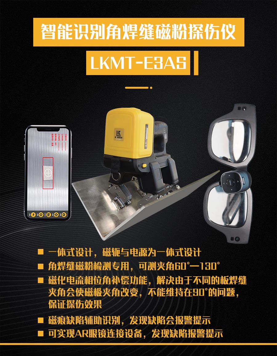 1、LKMT-E3AS一體式旋轉(zhuǎn)磁場(chǎng)角焊縫磁粉探傷儀,探頭與鋰電池一體式設(shè)計(jì),無(wú)需使用線鏈接;