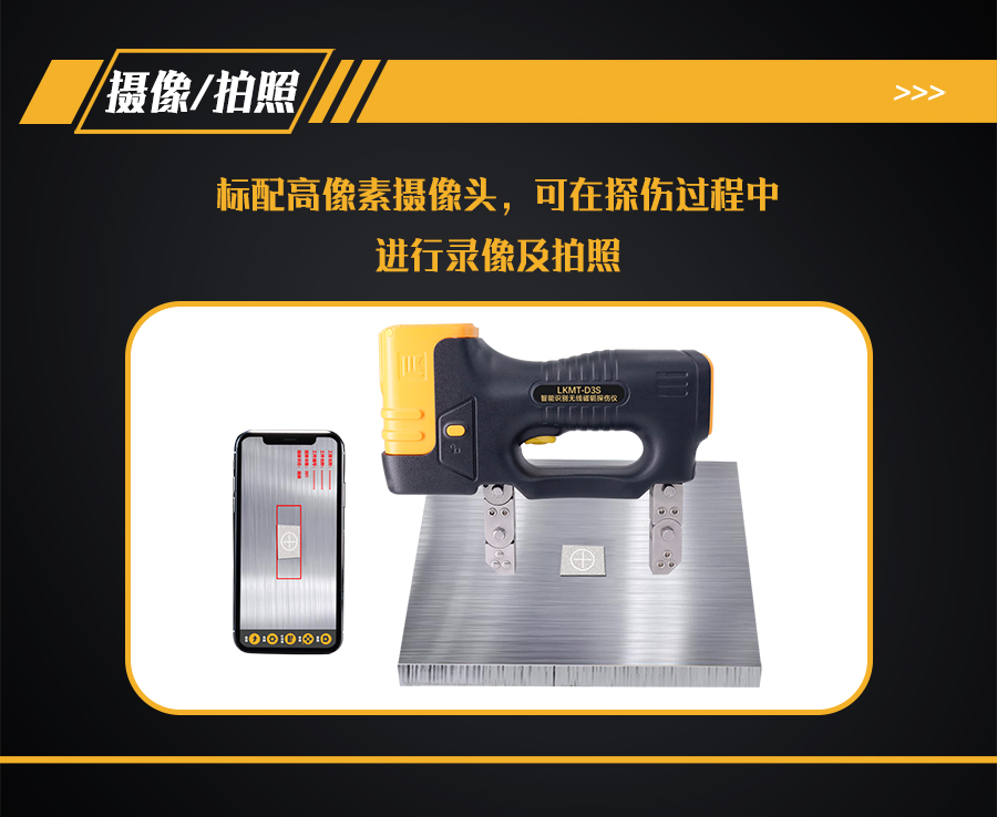 9、探頭內部裝有500萬像素攝像頭,手機、平板電腦或AR眼鏡等手持終端安裝APP軟件,通過Wi-Fi與探頭鏈接,手持終端實時顯示探傷狀態(tài)。