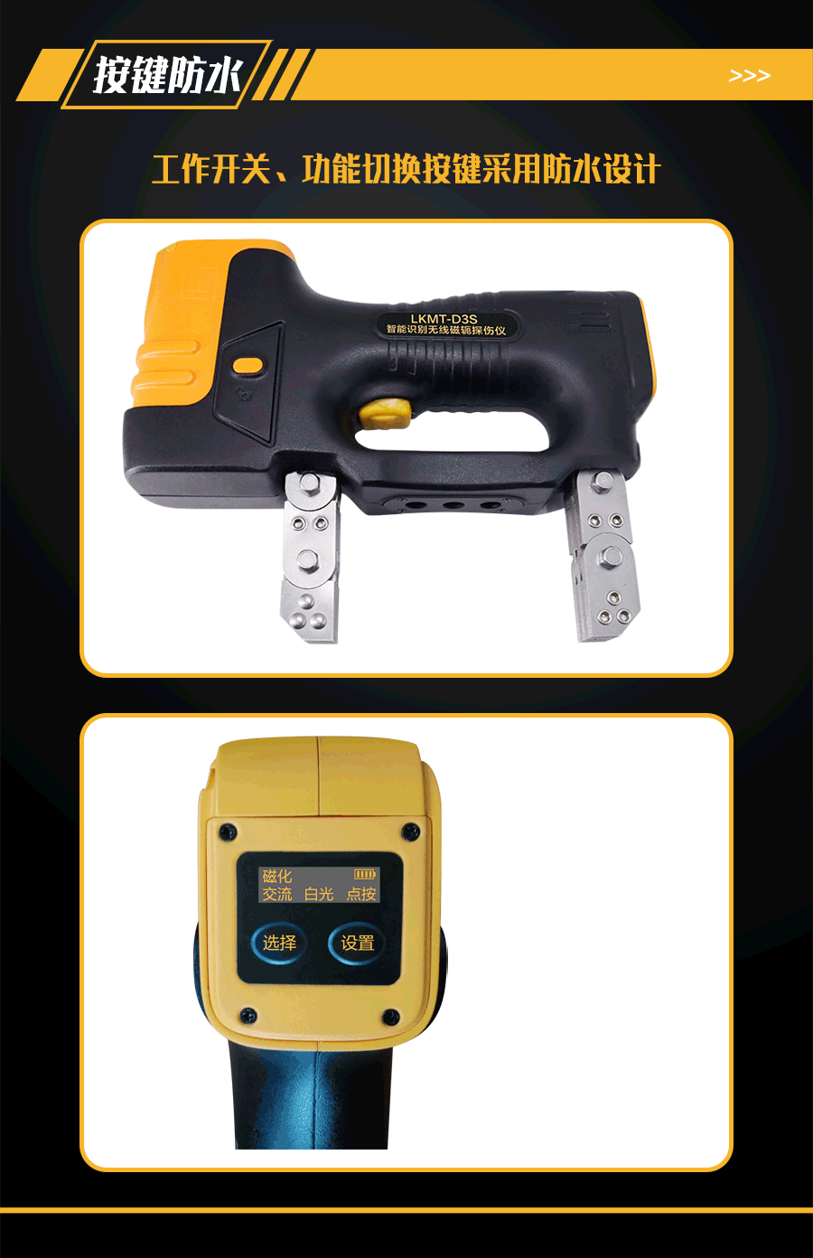 1、LKMT-D3S一體式交直流磁軛探傷儀,探頭與鋰電池一體式設計,無需使用線鏈接。